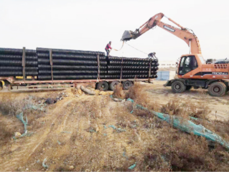 工地实拍|DN400 PE管卸货到场